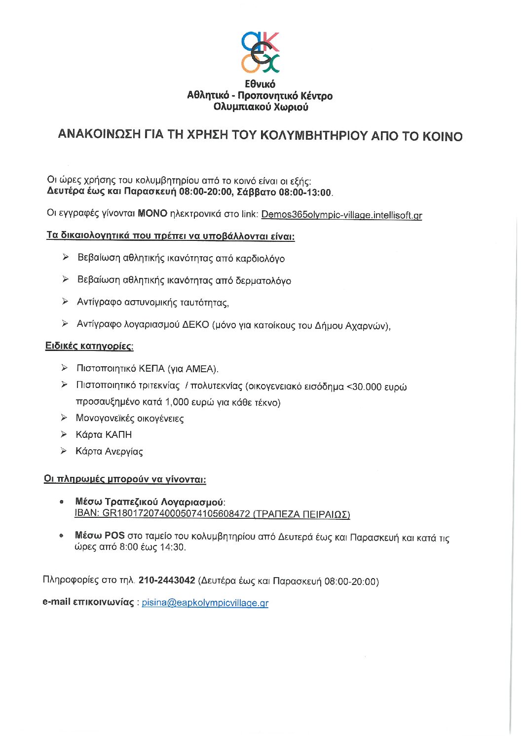 Ως Επιτροπή Διαχείρισης της Λειτουργίας των Αθλητικών Εγκαταστάσεων του Ολυμπιακού χωριού, δεν θα πάψουμε να ευχαριστούμε τους εθελοντές μας οι οποίοι έδωσαν τον καλύτερό...